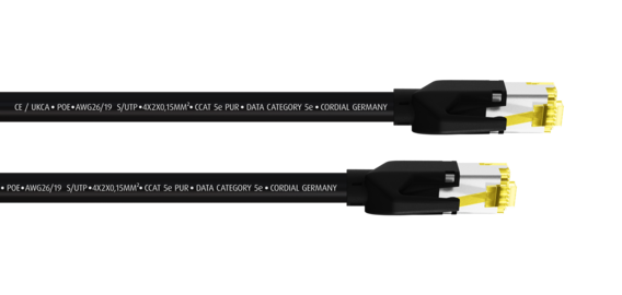 Our CSE HH 5e PUR data patch cable features our CCAT 5e PUR bulk cable and HIROSE® RJ45 connectors. Equipped with a flexible AWG 26/19 inner conductor and a special TPE-V stabilizer, the cable is ideal for the use with audio networks, lighting control and EtherSound™ systems.