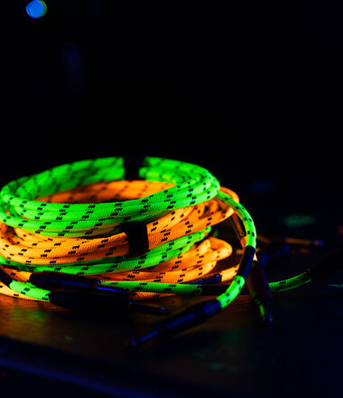 Die BLACKLIGHT-EDITION von Cordial kombiniert gewohnt hervorragende innere Werte mit einem UV-reaktiven Textilmantel, der bei Schwarzlicht besonders ins Auge sticht. In den Gewebemantel wurden dafür einzelne Fäden aus UV-reaktivem Material eingewoben. In Clubs oder auf Bühnen bringen diese Fasern die Kabel unter Schwarzlicht zum Strahlen in Grün oder Orange. Damit sorgst du für echte Hingucker in deinem Bühnenarrangement.