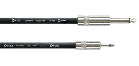 CIK 122, die Meterware des Konfektionskabels CPI PZ, weist eine Außenschirmung aus Kupfer-Drähten und einen extra Schirm aus leitendem Kunststoff auf. Die Kabelenden sind mit 3.5 mm und 6.35 mm REAN® Steckern aus Vollmetall handverlötet. Das bringt gegenüber marktüblichen Kabeln mit angeschweißten Steckern aus Plastik den Vorteil, dass elektrostatisch verursachte Störgeräusche, die durch Bewegung, Drauftreten etc. entstehen, minimiert werden.