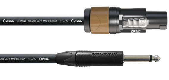 Ein 2-poliger NEUTRIK® Speakon Plug auf der einen und ein 6.3 mm NEUTRIK® Klinkenstecker auf der anderen Kabelseite, mit einer stärkeren 2,5 mm2 Meterware. Diese Attribute zeichnen das Lautsprecherkabel CPL LP 25, als Verbindung vom Gitarren- oder Bassverstärker zur Lautsprecherbox, aus.
