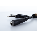 Das EY GPP ist ein Y-Adapter von 1x 6.3 mm Mono-Buchse auf 2x 6.3 mm Monoklinke zum Aufsplitten von Audio-Signalen. Die Übertragung erfolgt unsymmetrisch. Der aufgespritzte Knickschutz sorgt für lange Haltbarkeit und hohe Steckzyklen.