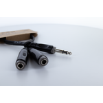 Das EY VKK ist ein Y-Adapter von 1x 6.3 mm Stereoklinke auf 2x 6.3 mm Stereobuchse zum Aufsplitten von Stereo-Audio-Signalen. Die Übertragung erfolgt symmetrisch. Der aufgespritzte Knickschutz sorgt für lange Haltbarkeit und hohe Steckzyklen.
