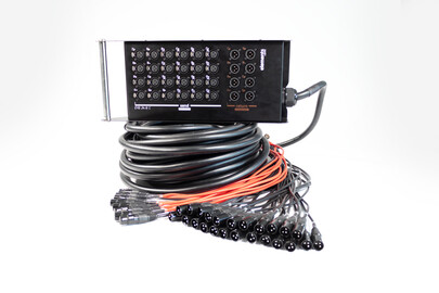 Das EYB 24-8 C ist ein 32-fach Multicore mit Stagebox zur symmetrischen Übertragung von 32 einzelnen Kanälen (24x send, 8x return) von der Bühne zum FoH oder im Proberaum.