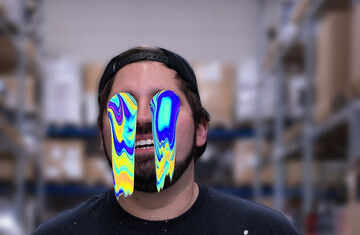 blacklightPsychadelic colourful glowing figures in complete darkness. Rhythmic dance movements to the beat, a guitarist on stage who makes the strings and hearts quiver.