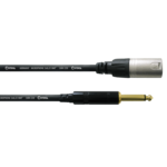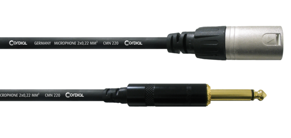 The CCM MP is used for unbalanced transmission of audio signals, for example from a guitar to an XLR input of an audio workstation or mixer, when there's only an XLR input available. Pin 1 and 3 of the XLR plug are soldered together. With a conductor area of 2x 0.22 mm² (both conductors are soldered together) and a spiral shielding of bare CU wires (90% coverage), it ensures undistorted signals in daily use. The moulded-on bend protection sleeve (plug openable) protects the sensitive areas from cable breakage and ensures solid mating cycles.