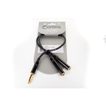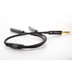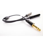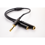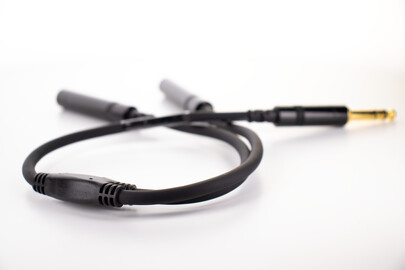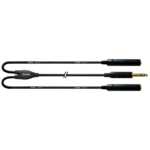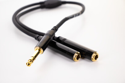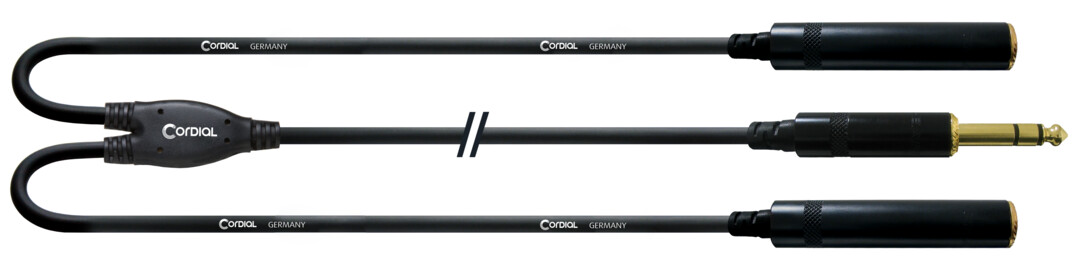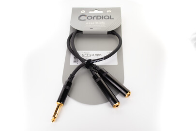 The splitter CFY VKK with 1x 6.3 mm stereo jack plug to 2x 6.3 mm stereo jack socket is a helpful tool whenever you, for example, want to split the headphone output of an audio interface.