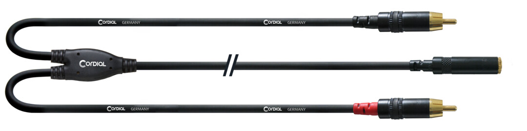 With the CFY YCC adapter cable featuring 1x 3.5 mm stereo mini jack socket to 2x male cinch, for example, a simple stereo signal is split into two mono components. Thus, a system, in which only one signal is actually available, can be used in stereo mode.