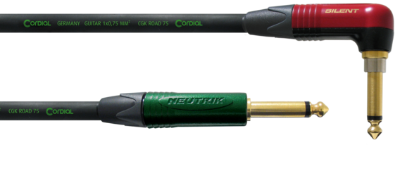 Cordial's legendary CRI PP instrument cable is also available with a right angle NEUTRIK® silentPLUG®. The connector version with an angle of 90 degrees is fitting closely to the guitar or bass and enables noiseless plugging and unplugging at the instrument.