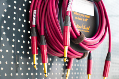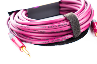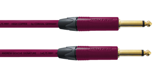 The color of the bulk cable and the special lacquer coating of the NEUTRIK jack plugs (gold-plated against corrosion) is, at the same time, striking and appealing: the cable comes in a Bordeaux purple color design (Andrew Gouche's "trademark").