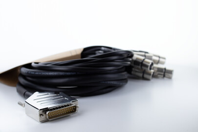 The EFD DFT is used to connect 8 XLR-channels to a digital interface (Tascam). The transmission is balanced. The robust metal D-Sub connector and the eight XLR female connectors with channel numbering and screwed-on bend protection together with a durable PVC jacket ensure long durability.
