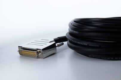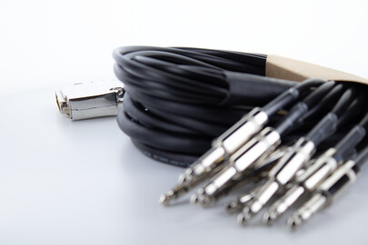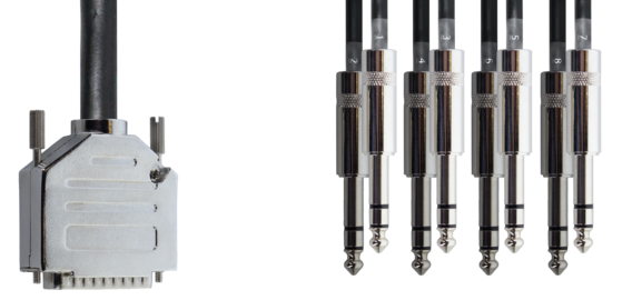 The EFD DVT is used to connect 8 channels to a digital interface with Tascam pinout. The transmission is balanced. The robust metal D-Sub connector and the eight 6.3mm stereo jacks with channel numbering together with a durable PVC jacket ensure long durability.