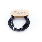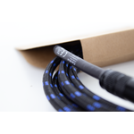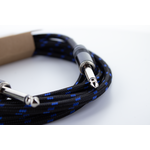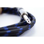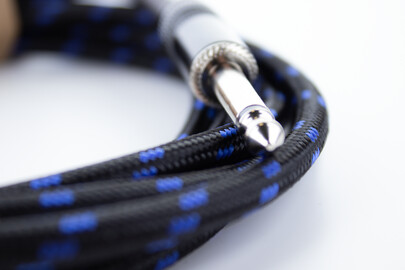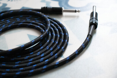 The EI PP-TWEED-BL is an instrument cable for style conscious musicians. Visually, it impresses by its combination of a modest, black/blue textile jacket and black 6.3 mm plugs with nickel-plated contacts. Its 0.22 mm² conductor area and a double shielding of spiral shielding and conductive plastic transport even the hardest riffs without hearable modification. Due to the single-strand construction (28 x 0.10 mm), the robust but flexible PVC compound and its fine textile jacket, the cable is particularly flexible and easy to be wound.