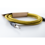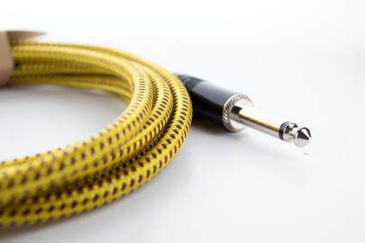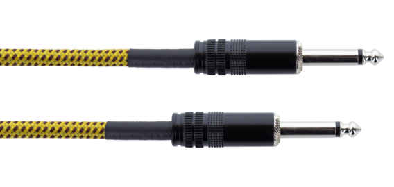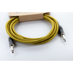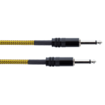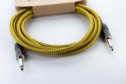 The EI PP-TWEED-YE is a solid cable for distinguished musicians and their instruments. It combines a high-quality textile jacket in gold tones with black 6.3 mm jack plugs and nickel-plated contacts. The conductor area of 0.22 mm² and a double shielding of spiral shielding and conductive plastic transport even the most elegant pieces to their destination unaltered. Due to the single strand construction (28 x 0.10 mm), the durable but flexible PVC compound, and the exquisite textile braiding, it is particularly flexible and can be wound easily.