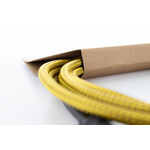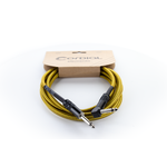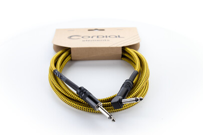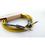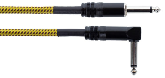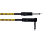 The EI PR-TWEED-YE is a robust instrument cable with one right-angle plug for noble musicians and their instruments. It combines a high-quality textile jacket in gold tones with black 6.3 mm jack plugs (1x straight, 1x angled) and nickel-plated contacts. The conductor area of 0.22 mm² and a double shielding of spiral shielding and conductive plastic transport even the most elegant pieces to their destination unaltered. Due to the single strand construction (28 x 0.10 mm), the durable but flexible PVC compound, and the exquisite textile braiding, it is particularly flexible and can be wound easily.