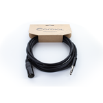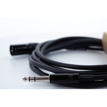 The EM MV is used for the balanced transmission of balanced audio signals (drum machines, interfaces, audio workstations) to XLR inputs (e.g. monitor boxes, mixing consoles). The robust XLR male connector with nickel-plated contacts and molded bend protection combined with the metal stereo jack and a durable PVC jacket withstand even the toughest conditions. The transmission is balanced.