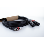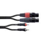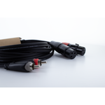The EU FC is an unbalanced twin cable for connecting two RCA outputs to two XLR inputs. The transmission is unbalanced. The robust RCA and XLR female connectors with nickel-plated contacts, colored channel marking, molded-on bend protection, and a durable PVC jacket ensure long durability and high mating cycles.