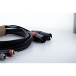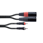 The EU MC is an unbalanced twin cable for connecting two mono XLR outputs to two RCA inputs. The transmission is unbalanced. The rugged RCA and XLR connectors with nickel-plated contacts, colored channel marking, molded-on bend protection, and a durable PVC jacket ensure long durability and high mating cycles.