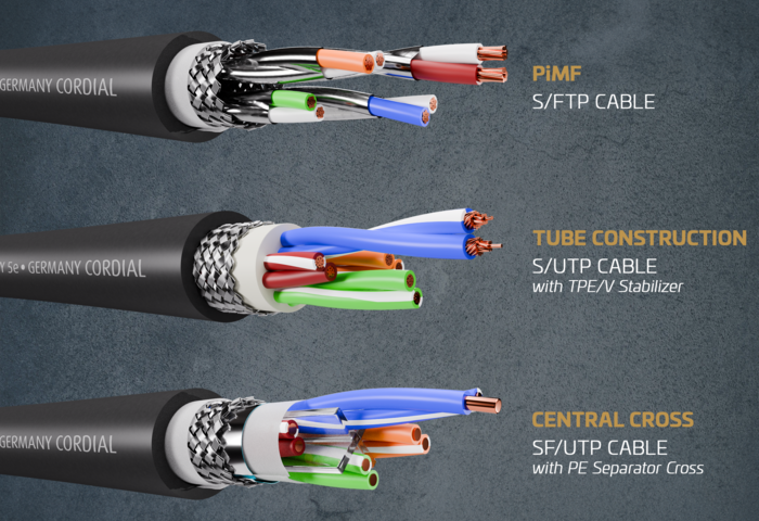 Thanks to the additional jacketing of the cores of microphone cables with conductive plastic, their microphony behaviour can almost be completely reduced. Therefore noise due to bending and moving of the cable can be eliminated.